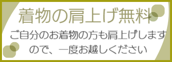 ご自分の着物の場合は前もってお着物をお持ちください。着物のお直し(肩上げ)を無料でさせていただきます。